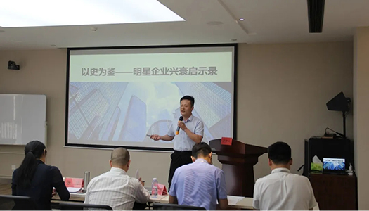 ▲鄭州地產集團投資管理有限公司 總經(jīng)理 于通 試講《以史為鑒 明星企業(yè)興衰啟示錄》