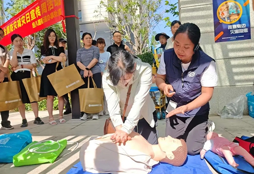 在互動(dòng)體驗(yàn)環(huán)節(jié),工作人員展示結(jié)繩演練并指導(dǎo)實(shí)操,保障群眾掌握基本結(jié)繩逃生技能?,F(xiàn)場還設(shè)置了仿真人體模型,醫(yī)護(hù)人員指導(dǎo)群眾進(jìn)行心肺復(fù)蘇操作練習(xí),同時(shí)為群眾演示海姆立克急救法操作流程。