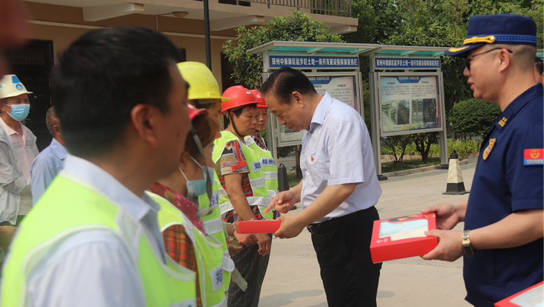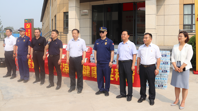進(jìn)入夏季以來,持續(xù)出現(xiàn)的高溫天氣,給奮戰(zhàn)在建設(shè)一線的施工人員帶來嚴(yán)峻考驗,廣大職工不畏酷暑,堅守崗位,辛勤付出。為做好廣大職工的防暑降溫工作,切實保護(hù)職工身體健康,6月11日,鄭州市總工會、鄭州市消防救援支隊到鄭州地產(chǎn)集團(tuán)西流湖公司中原新區(qū)土地一級開發(fā)項目指揮部開展主題為“送清涼、送安全、送健康、促和諧”的夏季送清涼活動。鄭州市一級巡視員、市總工會黨組書記、主席趙新中,市消防救援支隊副支隊長、滅火救援指揮部部長李隆,市總工會副主席宋少丹,鄭州地產(chǎn)集團(tuán)有限公司監(jiān)事會主席、工會主席李靜波及西流湖公司黨支部書記、董事長、總經(jīng)理吉獻(xiàn)亮等領(lǐng)導(dǎo)出席活動?;顒佑晌髁骱靖笨偨?jīng)理昌磊主持。