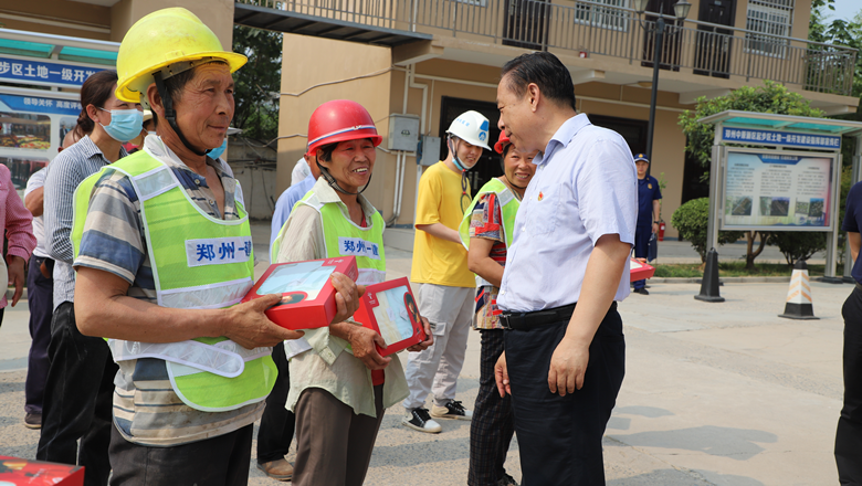 為切實做好防暑降溫工作,給項目工友送去清涼,鄭州市總工會精心準(zhǔn)備了夏季防暑降溫用品和礦泉水。市總工會、消防救援支隊領(lǐng)導(dǎo)為一線職工送去防暑降溫用品,慰問看望一線職工,將工會組織的關(guān)懷送到職工心坎上。