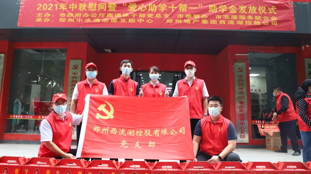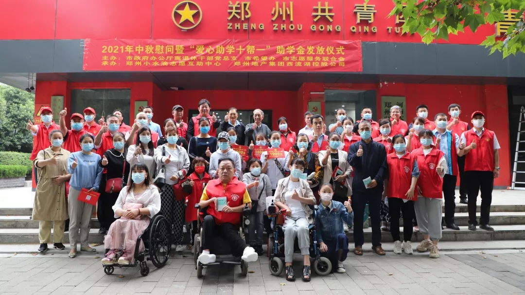 在中秋佳節(jié)來臨之際,由鄭州市政府辦公廳離退休干部黨總支、鄭州市希望工程辦公室、鄭州市志愿服務(wù)聯(lián)合會主辦,鄭州市小水滴志愿互助中心、鄭州地產(chǎn)集團西流湖控股公司聯(lián)合承辦的2021年中秋慰問暨“愛心助學(xué)十幫一”助學(xué)金發(fā)放儀式于9月17日上午在鄭州共青團青春家園舉行。