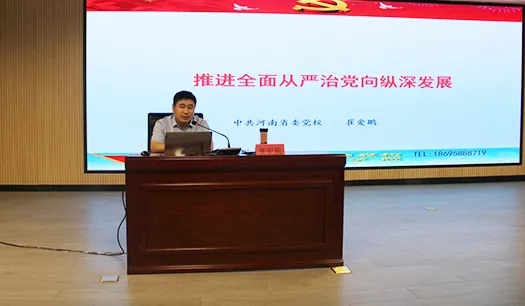 隨后,河南省委黨校崔愛鵬教授作了題為《推進(jìn)全面從嚴(yán)治黨向縱深發(fā)展》的專題培訓(xùn)。培訓(xùn)中,崔愛鵬教授從深刻理解新時(shí)代全面從嚴(yán)治黨向縱深發(fā)展的重大意義、全面把握新時(shí)代黨的建設(shè)的總要求、貫徹落實(shí)習(xí)近平總書記關(guān)于全面從嚴(yán)治黨的重要論述三個(gè)方面進(jìn)行了全面剖析和深入解讀,以史實(shí)為依據(jù),深入淺出,娓娓道來(lái),使大家充分認(rèn)識(shí)到,“嚴(yán)”是立黨的初心品質(zhì),是治黨的鮮明特色,也是強(qiáng)黨的經(jīng)驗(yàn)優(yōu)勢(shì)。堅(jiān)持從嚴(yán)治黨,更是我們黨克服一切艱難險(xiǎn)阻、完成歷史使命的重要政治優(yōu)勢(shì),為集團(tuán)學(xué)習(xí)黨史、了解黨史,進(jìn)一步做好黨風(fēng)廉政建設(shè)和作風(fēng)建設(shè)工作提供了指南。