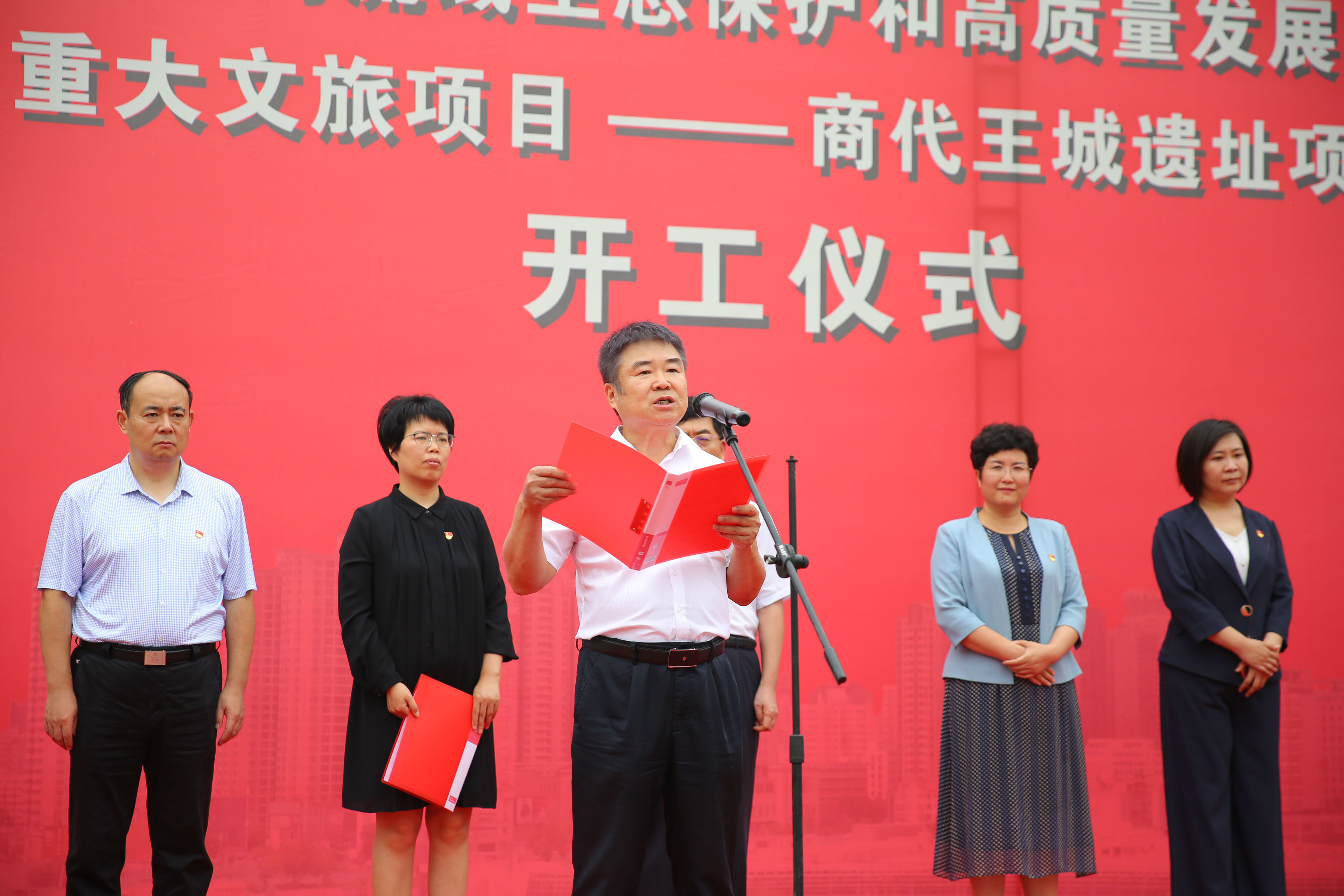 2020年7月24日上午,鄭州市建設(shè)黃河流域生態(tài)保護和高質(zhì)量發(fā)展核心示范區(qū)重大文旅項目集中開工活動——商代王城遺址項目開工儀式在亳都古巷項目現(xiàn)場舉辦。管城回族區(qū)委副書記、區(qū)長張艷敏等區(qū)委區(qū)政府領(lǐng)導出席,商都控股公司黨支部書記、董事長牛曉亮應(yīng)邀參加本次活動。