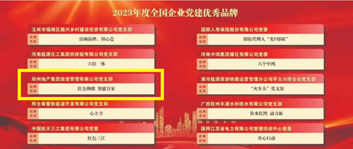 近日,鄭州地產(chǎn)集團(tuán)投資管理有限公司黨支部“紅色物聯(lián) 智惠萬家”黨建品牌被中國企業(yè)聯(lián)合會(huì)、中國企業(yè)家協(xié)會(huì)、《中國企業(yè)報(bào)》集團(tuán)和中企黨建研究院聯(lián)合授予“2023年度全國企業(yè)黨建優(yōu)秀品牌”榮譽(yù)稱號(hào)。