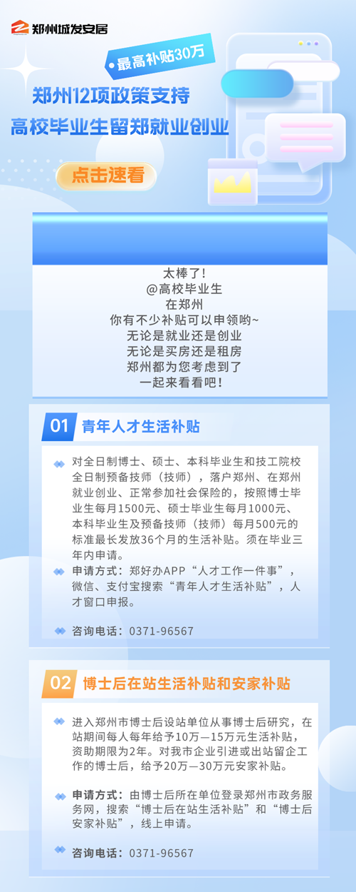 近年來,鄭州市通過盤活存量房源用作人才公寓、發(fā)放購房租房補貼等形式,多渠道解決人才階段性居住需求。比如,鄭州市創(chuàng)新實施人才補貼,除了人才公寓以外,符合條件的博士、碩士、學(xué)士學(xué)位畢業(yè)生,5年內(nèi)分別可享每月3000元、1500元、1000元房租補助,購房給予10萬元到30萬元不等的一次性購房補貼。