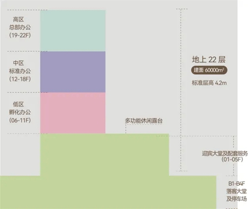 城發(fā)中心由鄭州城市發(fā)展集團全自持運營,地上建筑22層,地下建筑4層,總建面約10萬㎡,預計2025年建成交付。