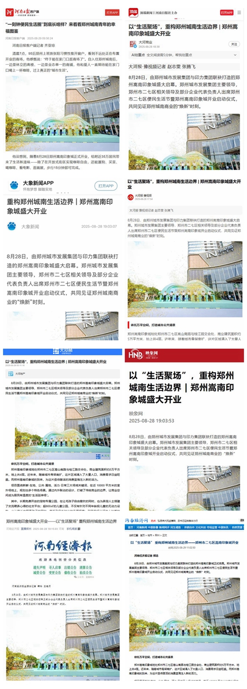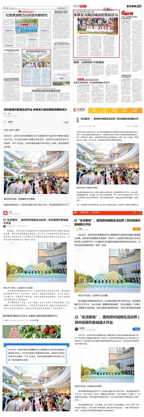 8月28日,鄭州城南商業(yè)格局迎來(lái)重大變革,由鄭州城市發(fā)展集團(tuán)與印力集團(tuán)攜手打造的鄭州嵩南印象城盛大啟幕,開(kāi)業(yè)首日客流達(dá)12.6萬(wàn)人次,迅速成為全城矚目的焦點(diǎn)。這一盛事引發(fā)了各大媒體的廣泛關(guān)注,河南日?qǐng)?bào)客戶端、頂端新聞、大象新聞、大河報(bào)、大河網(wǎng)、映象網(wǎng)、河南經(jīng)濟(jì)報(bào)、鄭州日?qǐng)?bào)、鄭州晚報(bào)、鄭州廣播電視臺(tái)等媒體紛紛聚焦,對(duì)其開(kāi)業(yè)進(jìn)行了全方位、多角度的報(bào)道。
