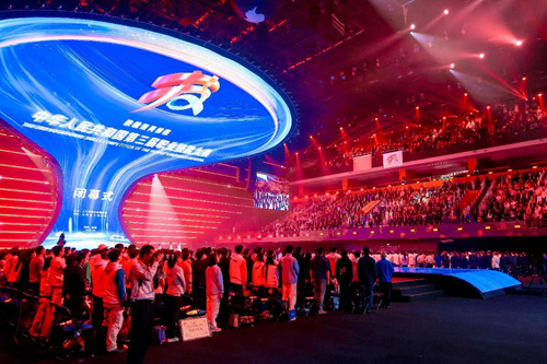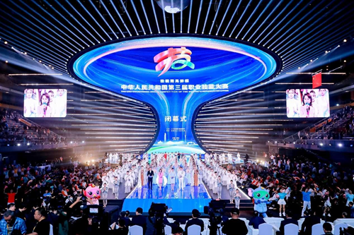 華燈璀璨,掌聲如潮。9月23日晚,當348名獲獎選手高舉隊旗與獎?wù)?,當大賽會旗在璀璨的舞臺上完成交接傳遞,當良渚文化和人形機器人在現(xiàn)場8000余名觀眾的歡呼聲中共舞……中華人民共和國第三屆職業(yè)技能大賽閉幕式在鄭州奧體中心體育館完美落幕!