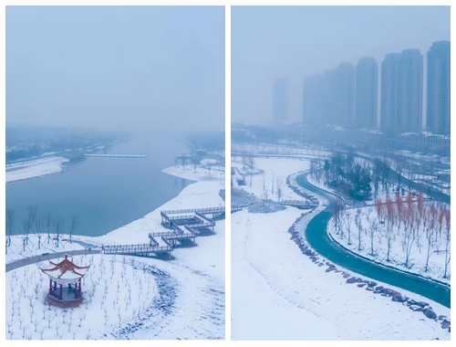 賈魯河畔的生態(tài)廊道銀裝素裹