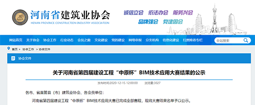 近日,由河南省住建廳指導、河南省建筑業(yè)協(xié)會主辦的河南省第四屆建設(shè)工程“中原杯”BIM技術(shù)應(yīng)用大賽獲獎名單揭曉,經(jīng)過層層評審,由鄭州地產(chǎn)集團投資管理有限公司主導,上海建工二建集團有限公司、機械工業(yè)第六設(shè)計研究院有限公司配合完成申報的河南省人民醫(yī)院地下智能停車及綜合開發(fā)建設(shè)項目BIM技術(shù)應(yīng)用榮獲建筑類綜合成果三等獎。