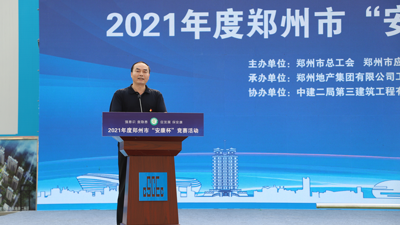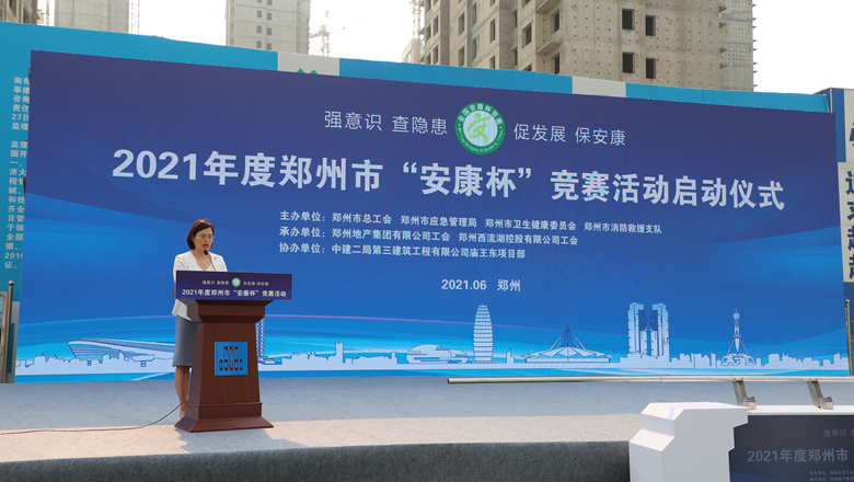 為深入貫徹落實(shí)習(xí)近平總書記有關(guān)加強(qiáng)安全生產(chǎn)工作的部署和要求,進(jìn)一步強(qiáng)化各級各部門、各企業(yè)主體的安全責(zé)任意識,確保我市安全生產(chǎn)形勢持續(xù)好轉(zhuǎn),職工安全健康不斷鞏固。6月11日上午,由鄭州市總工會、鄭州市應(yīng)急管理局、鄭州市衛(wèi)生健康委員會及鄭州市消防救援支隊(duì)主辦,鄭州地產(chǎn)集團(tuán)工會、鄭州西流湖控股有限公司工會承辦的鄭州市2021年“安康杯”競賽啟動儀式在中原新區(qū)廟王東安置區(qū)項(xiàng)目成功舉行。鄭州市相關(guān)組織部門、市總工會成員單位、地產(chǎn)集團(tuán)、西流湖公司、各參建單位共200余人參加啟動儀式。鄭州市一級巡視員,市總工會黨組書記、主席趙新中、鄭州市衛(wèi)生健康委員會黨組成員、二級調(diào)研員楊德林、鄭州市應(yīng)急管理局三級調(diào)研員安春茂、鄭州市消防救援支隊(duì)副支隊(duì)長、滅火救援指揮部部長李隆、鄭州市總工會副主席宋少丹、鄭州地產(chǎn)集團(tuán)有限公司監(jiān)事會主席、工會主席李靜波、鄭州地產(chǎn)集團(tuán)西流湖公司黨支部書記、董事長、總經(jīng)理 吉獻(xiàn)亮,中建二局第三建筑工程有限公司西北分公司黨委副書記、執(zhí)行總經(jīng)理趙海軍出席儀式。啟動儀式由市總工會勞動和經(jīng)濟(jì)部部長宋慧主持。