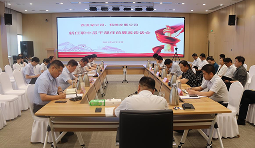6月19日下午,西流湖公司、鄭地發(fā)展公司召開新任中層干部任前廉政談話會。公司領(lǐng)導(dǎo)班子成員、中層正副職人員及新任職中層干部人員共計(jì)二十余人參加,會議由公司黨支部書記、董事長、總經(jīng)理吉獻(xiàn)亮主持。會議要求新任中層干部要認(rèn)清定位、做好表率,要對下負(fù)責(zé)、嚴(yán)格管理,以強(qiáng)烈的事業(yè)心和主人翁姿態(tài),主動扛大梁、挑重?fù)?dān)、負(fù)重責(zé)、做貢獻(xiàn);要敢于擔(dān)當(dāng)作為,勇于攻堅(jiān)克難,要以踏石留印、抓鐵有痕的勁頭理清思路、突出重點(diǎn)、轉(zhuǎn)變作風(fēng)、創(chuàng)新機(jī)制,以主動擔(dān)當(dāng)、奮發(fā)有為的姿態(tài)扛起助力城市建設(shè)發(fā)展的大旗,為鄭州國家中心城市建設(shè)增光添彩。