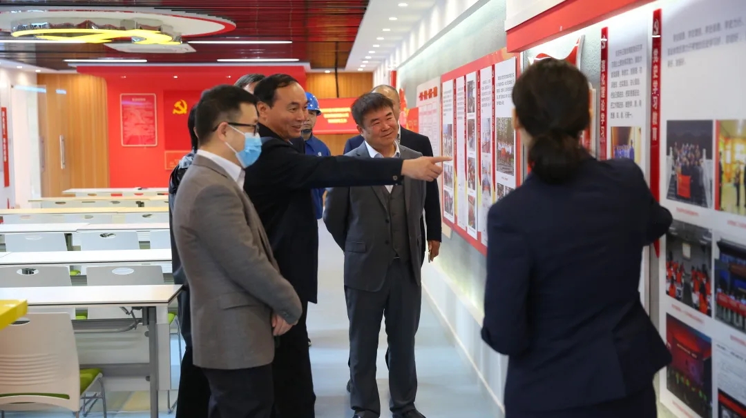 在鄭地投資公司黨支部省醫(yī)項(xiàng)目部,投資公司黨支部書(shū)記、董事長(zhǎng)楚紀(jì)方詳細(xì)匯報(bào)了黨支部以黨建智慧“大腦”為依托,圍繞“紅色物聯(lián) 融通萬(wàn)物”黨建特色品牌”,全力構(gòu)建“113N”黨建工作體系的特色做法。驗(yàn)收組一行詳細(xì)觀摩了省醫(yī)項(xiàng)目“紅色物聯(lián) 融通萬(wàn)物”黨建示范點(diǎn)創(chuàng)建觀摩展廳。張晟組長(zhǎng)高度肯定了投資公司省醫(yī)項(xiàng)目、綠城廣場(chǎng)地下綜合開(kāi)發(fā)等惠民項(xiàng)目在解決人民群眾“急難愁盼”問(wèn)題中展現(xiàn)的責(zé)任擔(dān)當(dāng),強(qiáng)調(diào)要繼續(xù)堅(jiān)持用黨的創(chuàng)新理論破解項(xiàng)目發(fā)展難題,以新方法新作為開(kāi)創(chuàng)工作新面貌,將黨建業(yè)務(wù)互促互融的政治優(yōu)勢(shì)轉(zhuǎn)化為項(xiàng)目建設(shè)優(yōu)勢(shì),把黨的政治優(yōu)勢(shì)轉(zhuǎn)化為項(xiàng)目中心工作發(fā)展的實(shí)際行動(dòng)。